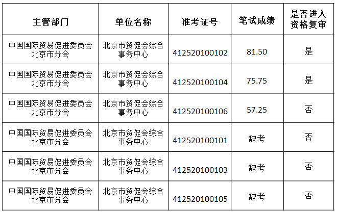 北京市贸促会综合事务中心公开招聘工作人员笔试成绩公告