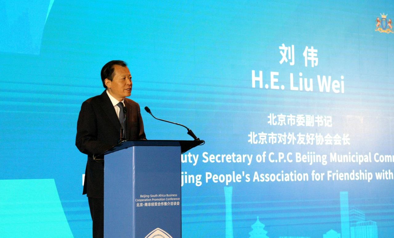 刘伟副书记表示,近年来,在两国元首的战略引领和亲自推动下,中南关系步入“黄金时代”,经贸合作取得跨越式发展。当前北京经济保持向好发展势头,今年一季度地区生产总值同比增长6.0%,研发创新保持活跃,数字经济增加值同比增长8.7%,人工智能、商业航天、全自动智能驾驶等未来产业快速发展。不断巩固和完善高精尖产业格局,培育形成新一代信息技术、科技服务业2个万亿级产业集群和医药健康、集成电路、智能网联汽车、智能制造与装备等8个千亿级产业集群。南非是非洲大陆经济最发达的国家之一,资源丰富、基础设施体系健全、投资环境良好、市场潜力巨大。去年北京对南非进出口89亿美元,占北京对非贸易的近五分之一。双方在数字经济、现代农业、生物医药、文化旅游、绿色能源、金融等领域具有广阔的合作空间。希望进一步加强团结友好,深化互利合作,为构建新时代高水平中非命运共同体和共建“一带一路”高质量发展作出积极贡献。