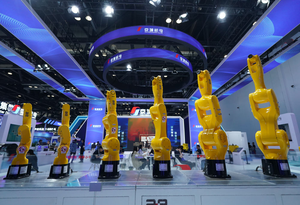 第二十七届北京科博会上的工业机器人。(资料照片)